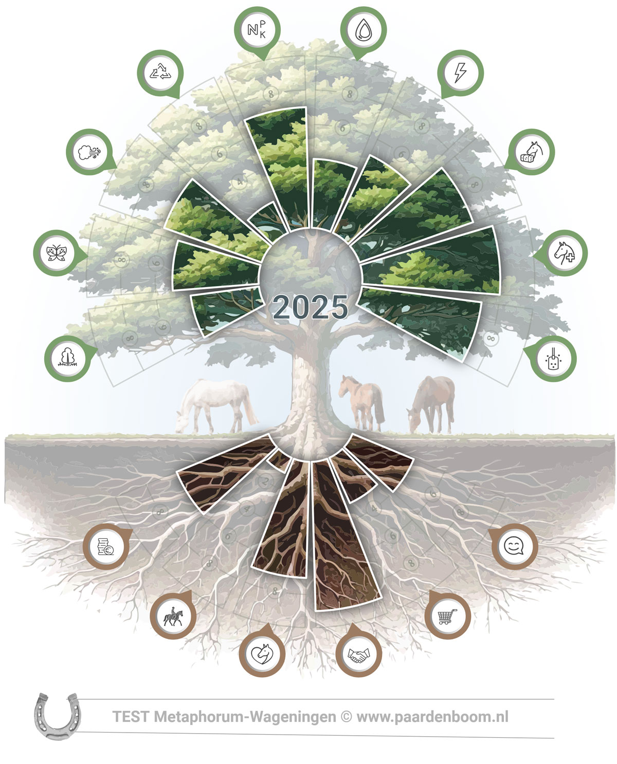 Daarom is er de PaardenBoom: een reflectietool die ondernemers in de paardensector helpt inzicht te krijgen in de sociale, ecologische en economische aspecten van hun bedrijf. De tool is geen toetsingsinstrument of keurmerk, maar een uitnodiging tot reflectie, ontwikkeling en dialoog – zowel op het erf als met de omgeving en beleidsmakers.